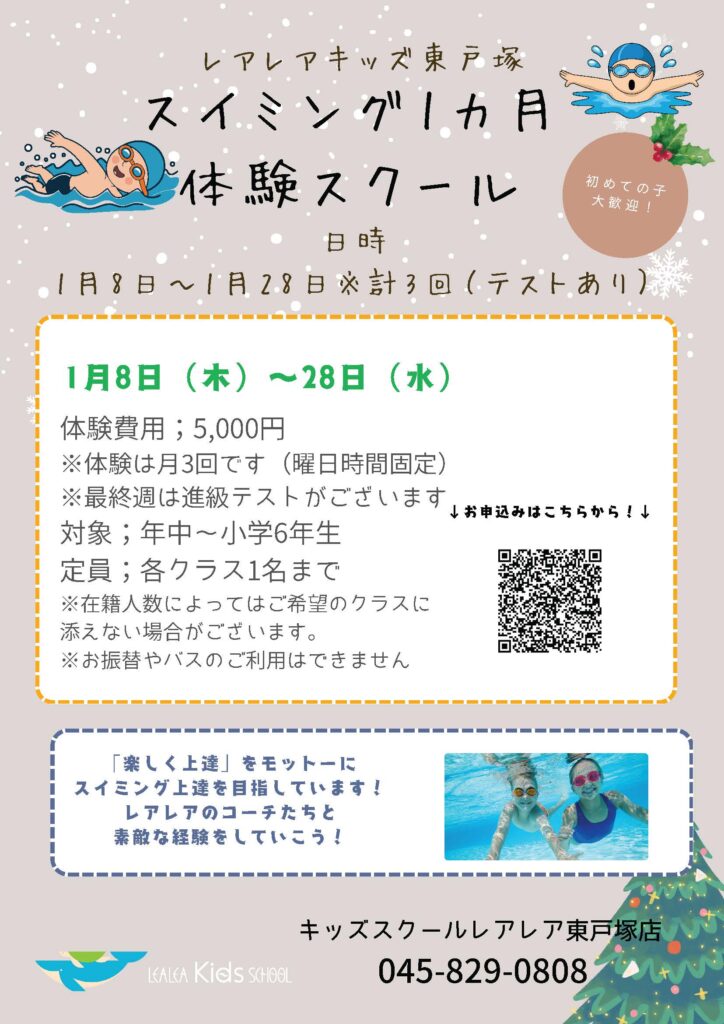 【東戸塚校】【1月】スイミング1ヶ月体験募集