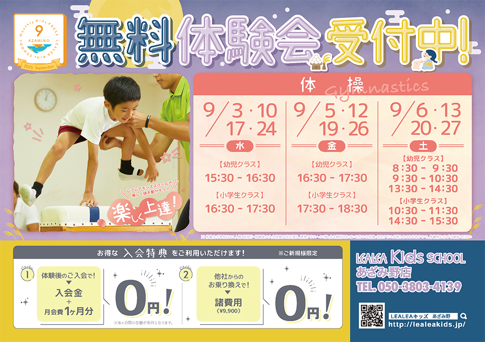 <入会特典> 体験後のご入会で今なら入会金と月会費1ヶ月分が0円に!!