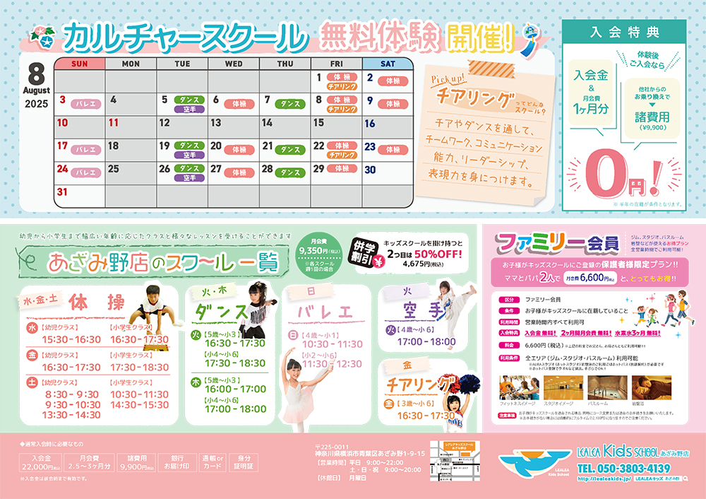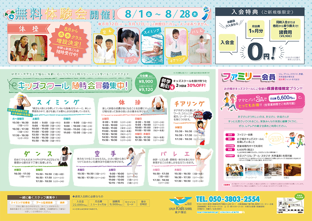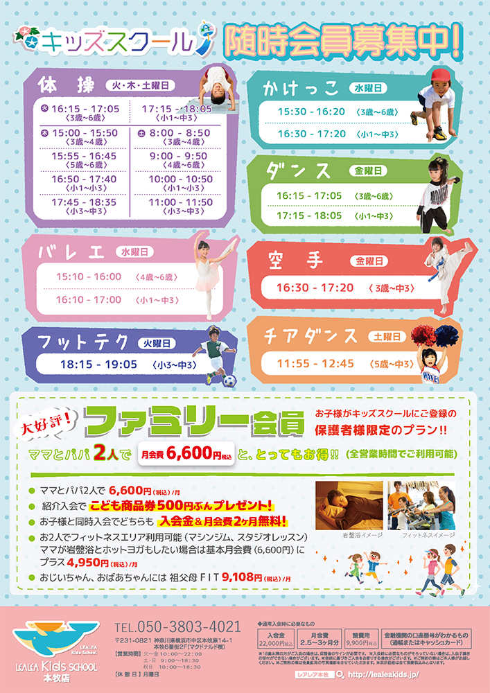 レアレアキッズスクール松戸校では、体操・バレエ・ダンスのスクール無料体験を開催いたします。