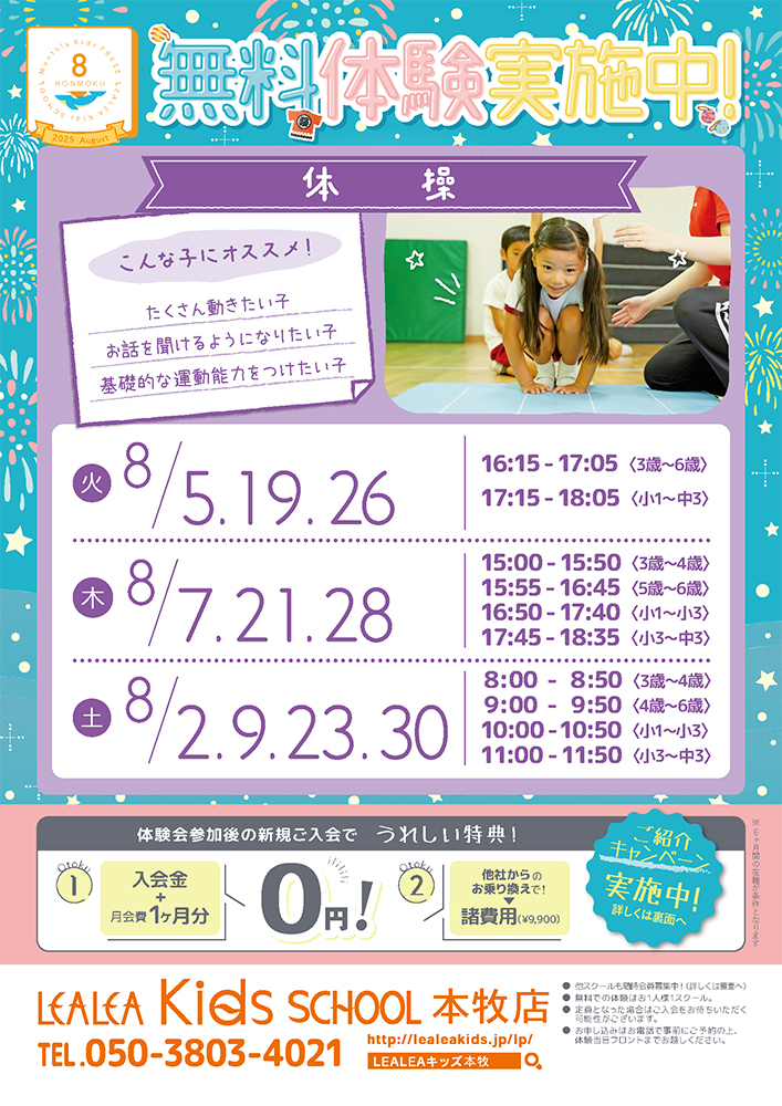 <入会特典> 体験後のご入会で今なら入会金と月会費1ヶ月分が0円に!!